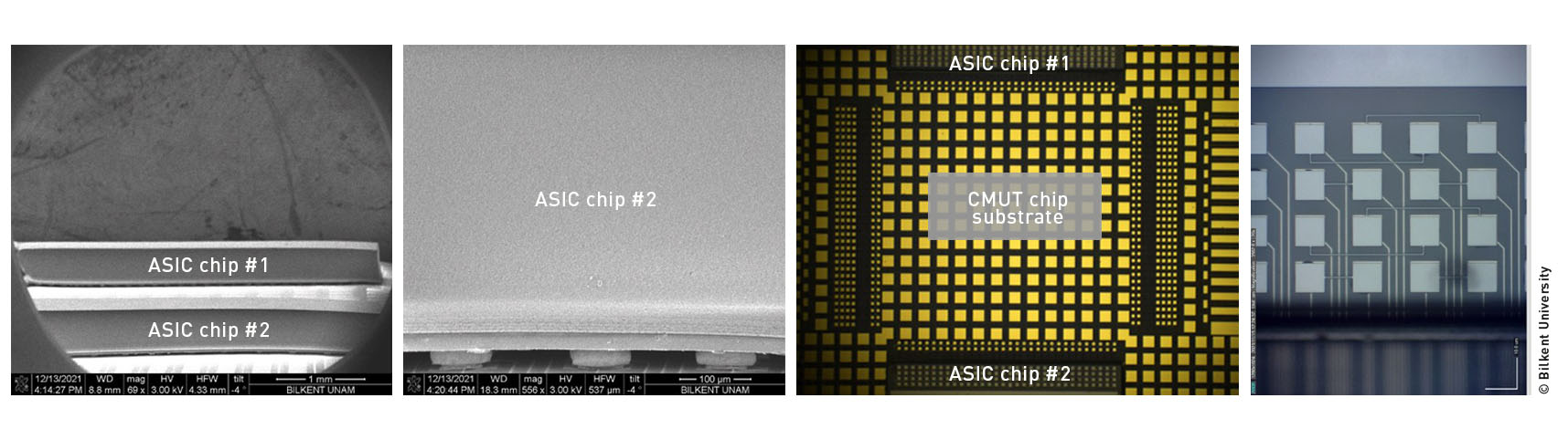 Back in 2014, UNAM acquired a FINEPLACER® micro assembly system to strengthen the research infrastructure, and also to make the tool available to users from academia and industry. Most recently, the die bonder was to be used as part of a TUBITAK (The Scientific and Technological Research Council of Turkey) 1003 Program (Primary Subjects R&D Funding Program) project for the development of a demanding ultrasonic flip-chip bonding application in the field of data communication between a CMUT array sensor chip and ASIC chips. However, there were two catches: first, the machine had not actually been specified for ultrasonic bonding capabilities when it was purchased, and second, the initially estimated force requirements per ball bump were believed to be insufficient for thermo-compression flip-chip bonding or ultrasonic flip-chip bonding of approximately 140 ball stud bumps made from gold wire.