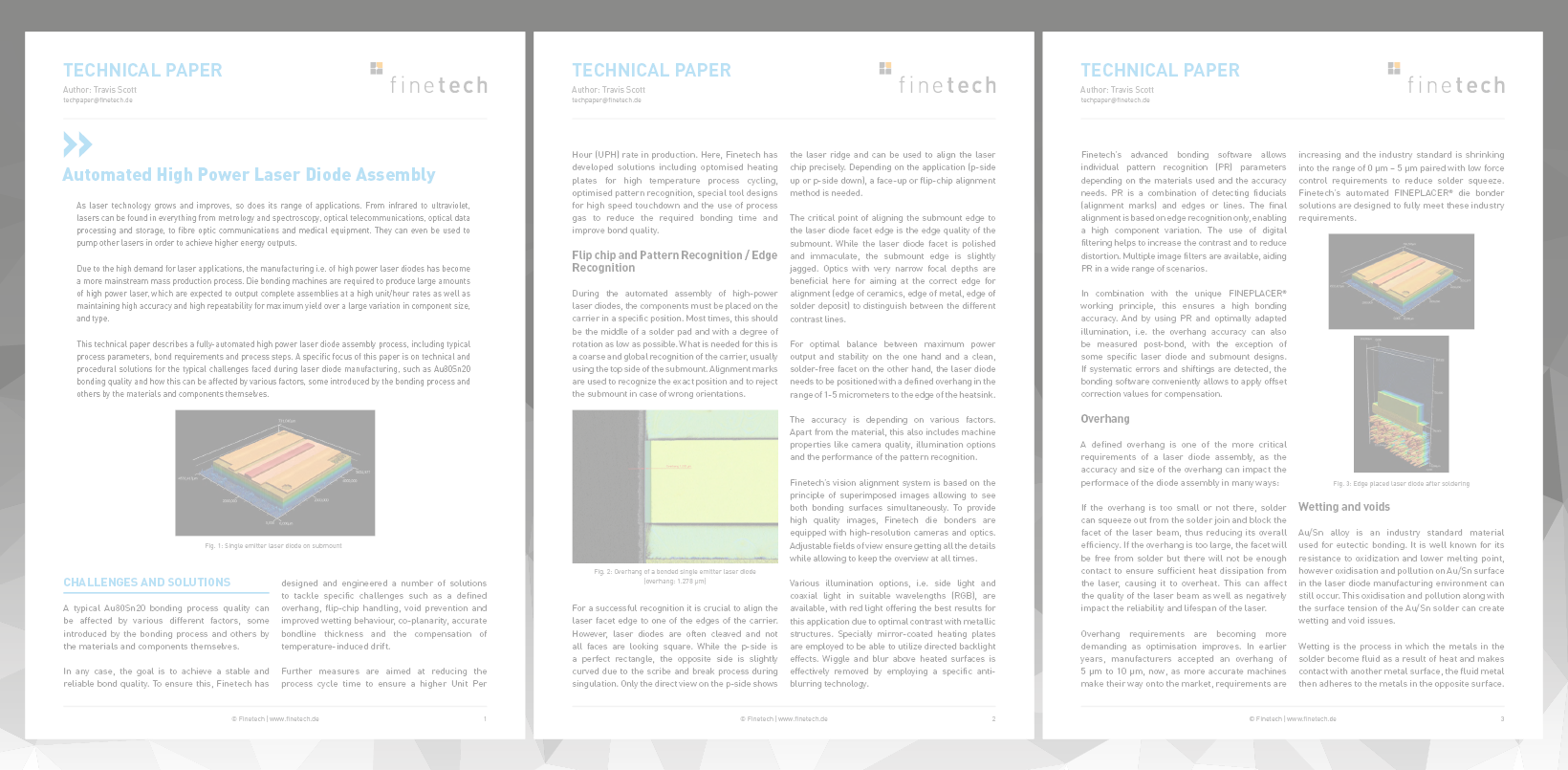 This technical paper describes a fully-automated high power laser diode assembly process, including typical process parameters, bond requirements and process steps. A specific focus of this paper is on technical and procedural solutions for the typical challenges faced during laser diode manufacturing, such as Au80Sn20 bonding quality and how this can be affected by various factors, some introduced by the bonding process and others by the materials and components themselves.