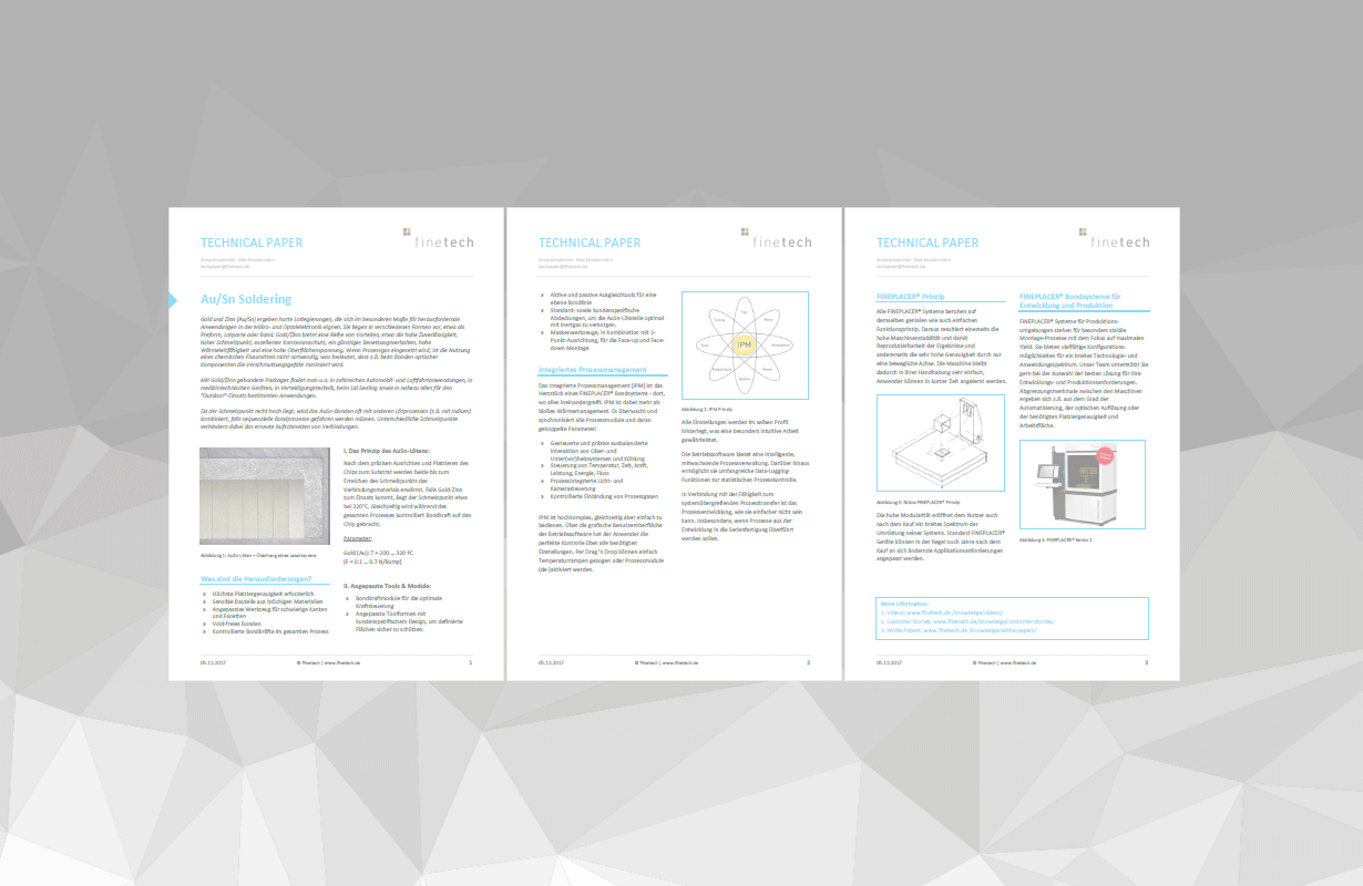 Eutectic bonding with Au/Sn provides a number of advantages, e.g. high stability, high melting temperature, excellent resistance to corrosion, good wetting behavior, high thermal conductivity and high surface tension. If process gas is integrated into the process, the use of flux is not required, meaning that during bonding of e.g. optical components the risk of pollution is diminished.
