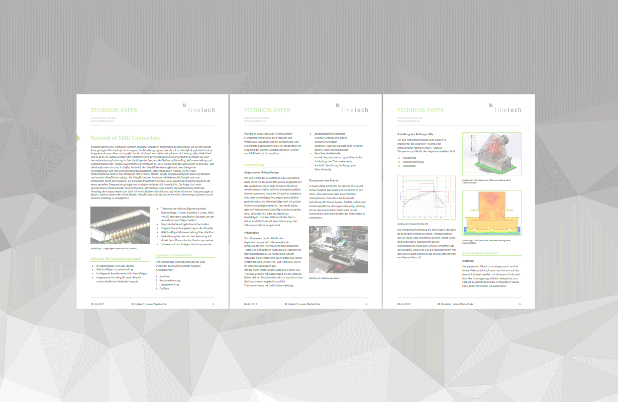 Abstract: Due to their reduced space requirements, miniaturized SMD connectors are increasingly being used for small component assemblies, for example, found in mobile devices. Large SMD connectors and plugs are also widely spread. An example here could be the PCI express connector typically found on motherboards and server boards. The length on the connector is a particular challenge here, because it has a direct influence on handling, heat distribution, and application of the solder paste. There are significant differences in terms of layouts and shapes, sizes, used materials (affects allowed maximum temperature), surface conditions, design of contact areas and pins (symmetric/asymmetric, open/covered, number, shapes, pitch, etc.). Infrared systems can be quickly stretched to their limits in this case due to the energy input through dark and matte surfaces of the connectors. Such surfaces reflect the energy which must be then transferred through the device in to the connectors. Their longer form does not completely allow a targeted energy input through the infrared spots, which usually leads to melted connectors and burned circuit boards. Component handling is yet another challenge. BGAs with mainly flat surfaces are easy to pick up with a vacuum tool, whereas connectors are better to pick up with a clamping tool.