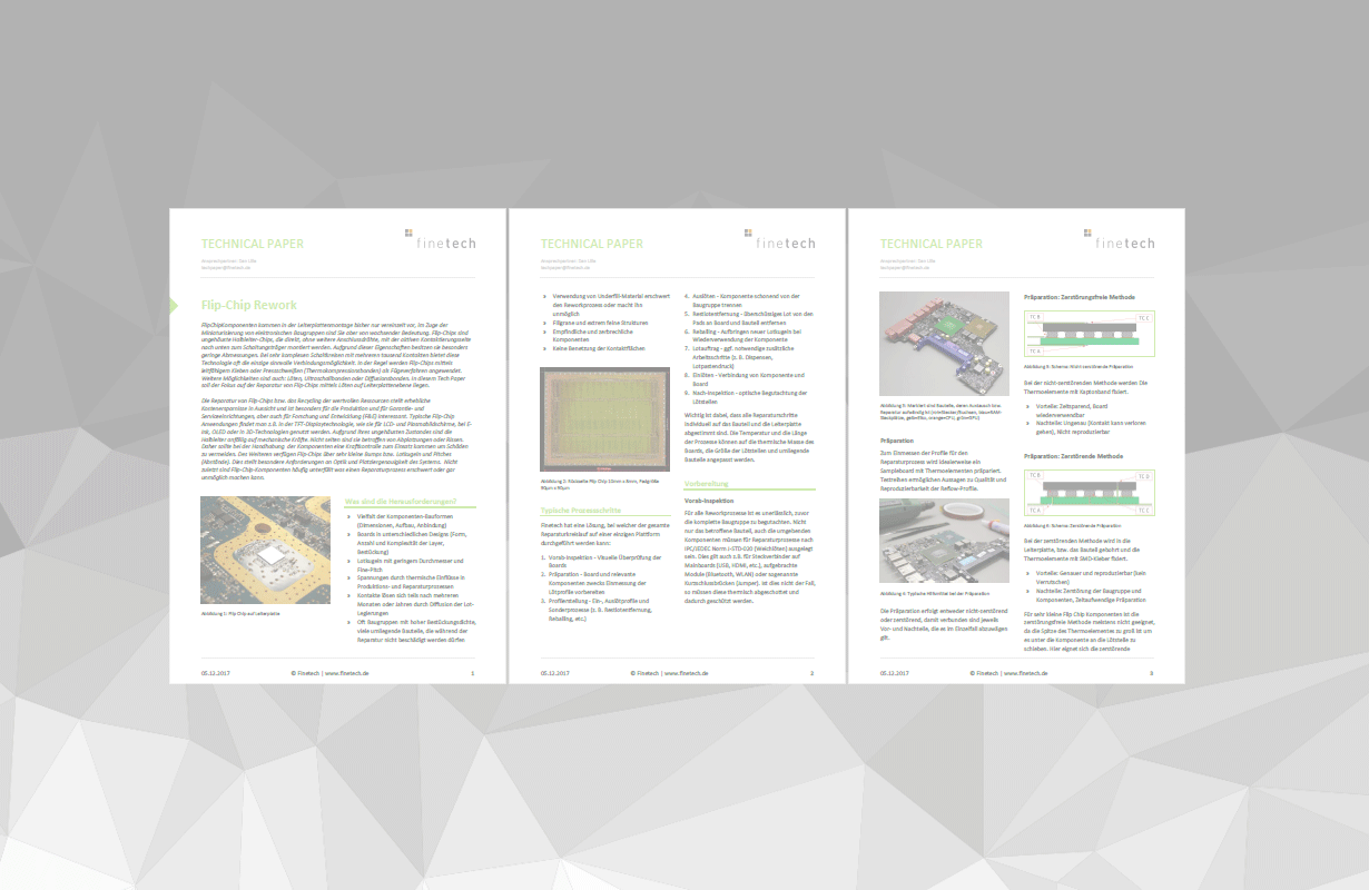 Abstract: Flip chip components have rarely been used in PCB assembly, but they are becoming more and more important as the need for miniaturization of electronic assemblies is growing. Flip chips are bare dies which are mounted directly, without any further connecting wires, onto the circuit carrier with the active side down. This means they come in particularly small sizes. This technology is often the only suitable assembly possibility for very complex circuits with several thousand contacts. Generally, flip chips are assembled by means of conductive bonding or pressure welding (thermocompression bonding), other options include soldering, ultrasonic bonding or diffusion bonding. This Technical Paper focuses on flip chip rework by means of soldering at PCB level.