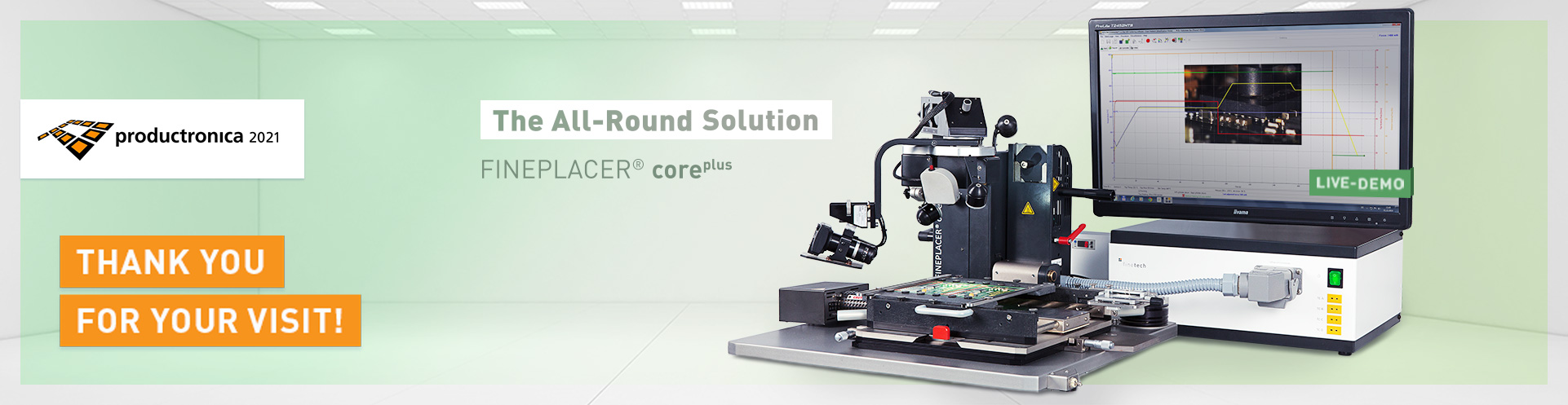 Thank you for visiting our booth during Productronica 2021 in Munich! We hope your stay was successful and you could find answers and solutions that fit your needs. Our tradeshow team has been delighted by many inspiring conversations and exciting project ideas and all of us at Finetech are looking forward to working with you to bring your vision to life.