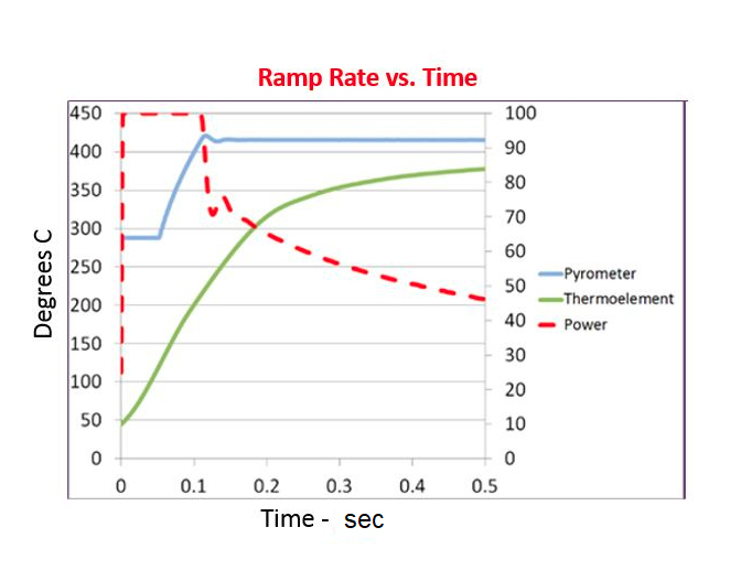 Not all substrates and/or die have the same thermal absorption ratio, so it may be necessary to heat one or the other…or both at different ramp rates in order to heat the solder uniformly and to avoid thermal-mismatch. Using a laser as the primary heat source eliminates this necessity because either the die or substrate is heated via laser. In addition, the ramp rate of a laser is exponentially faster than conventional conduction heat. (see bonding profile graphic)